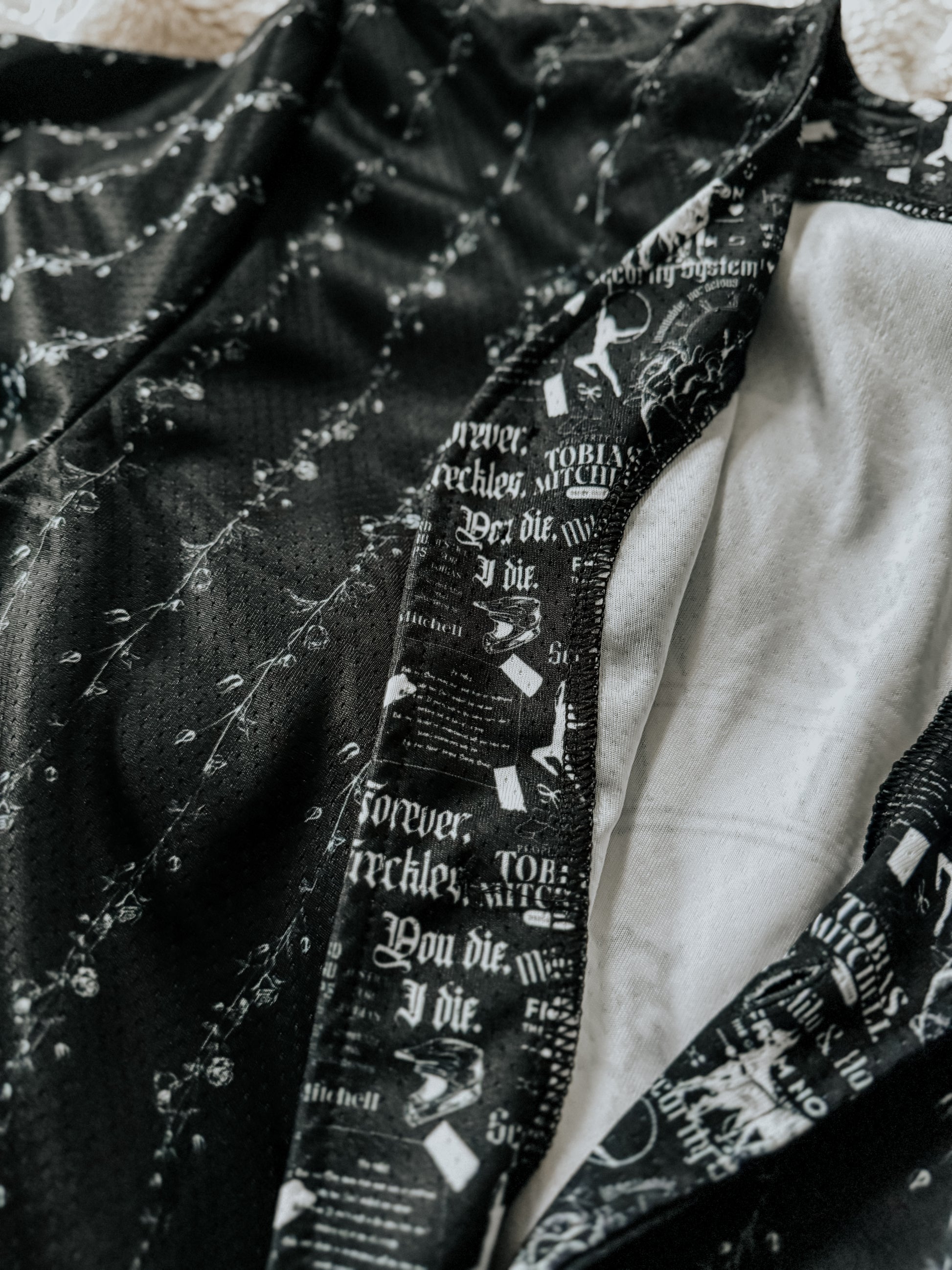 Elevate your wardrobe with our Edge of Darkness Trilogy Jersey. This custom, bookish jersey features a unique exclusive pattern that will make you stand out in any crowd. Perfect for literary enthusiasts and trendsetters alike!