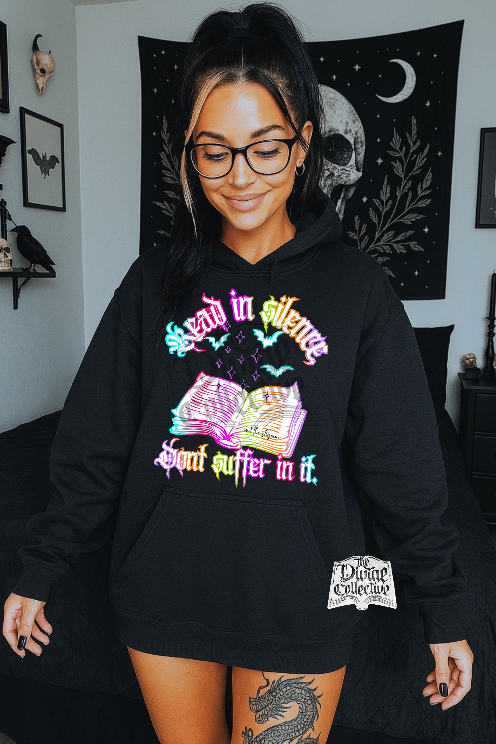 At the Divine Collective, I believe that fashion should be fun and expressive. We want you to feel empowered and confident when you wear our tees, and we hope that they inspire you to embrace your own unique style. So go ahead, express yourself, and rock our edgy graphic tees with pride!